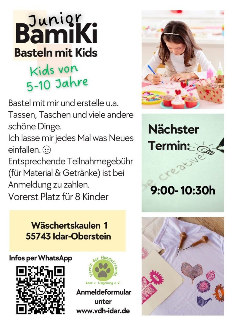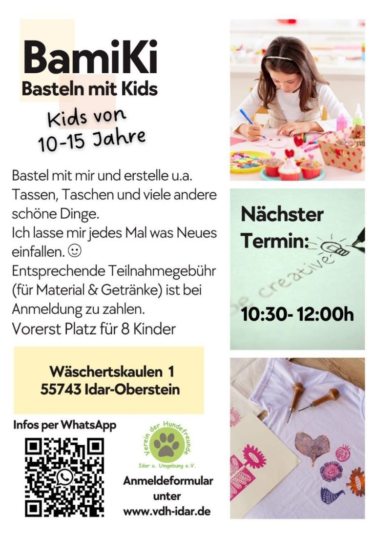 Entsprechende Teilnahmegebühr (für Material & Verpflegung) ist bei Anmeldung zu zahlen.